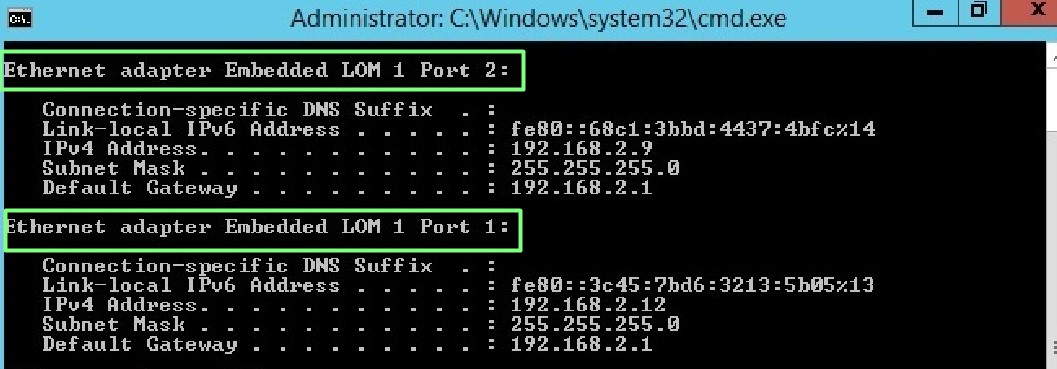 LOM1 (Port1 ve Port2) aktif durumda ve portlara daha önce IP yapılandırılması yapılmış.